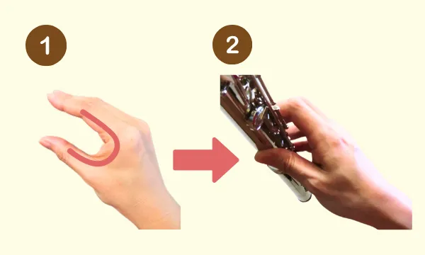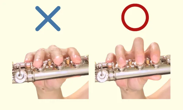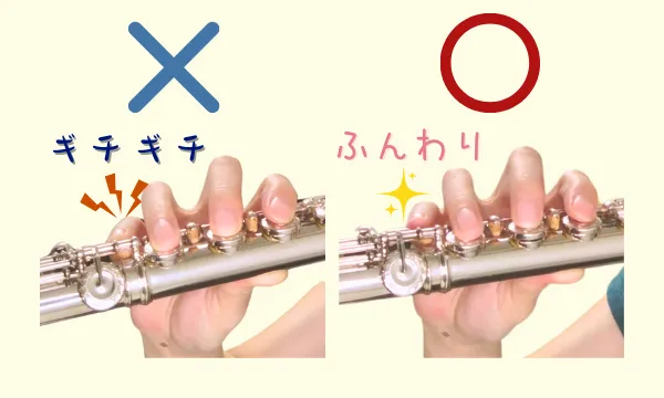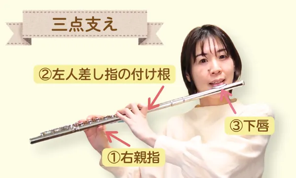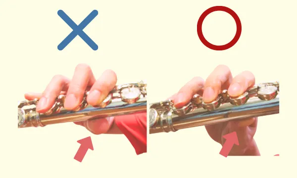 フルートの基本の持ち方「三点支え」の一点です。