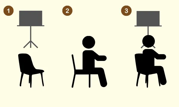 右斜めを向いている状態で、上半身を正面(譜面台)の方にひねります。
