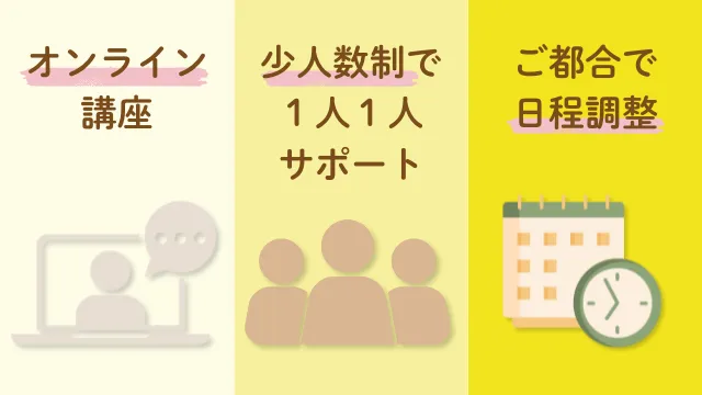 ●講座の受講日については、受講さまのご希望日時をうかがって講師と日程調整を行いますので、ご都合のいい日時で受講することができます。